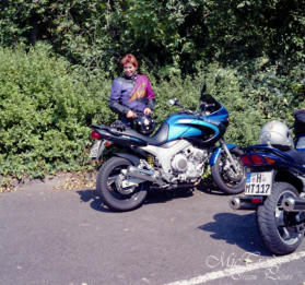 Motorrad, die Krankheit machte Uschi unheimlich zu schaffen. Auf der TDM ging es mit dem Sitzen