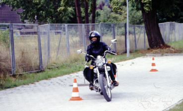 perfekt war, ihre „echten“ Fahrstunden die sie auf der eigenen Maschine absolvierte